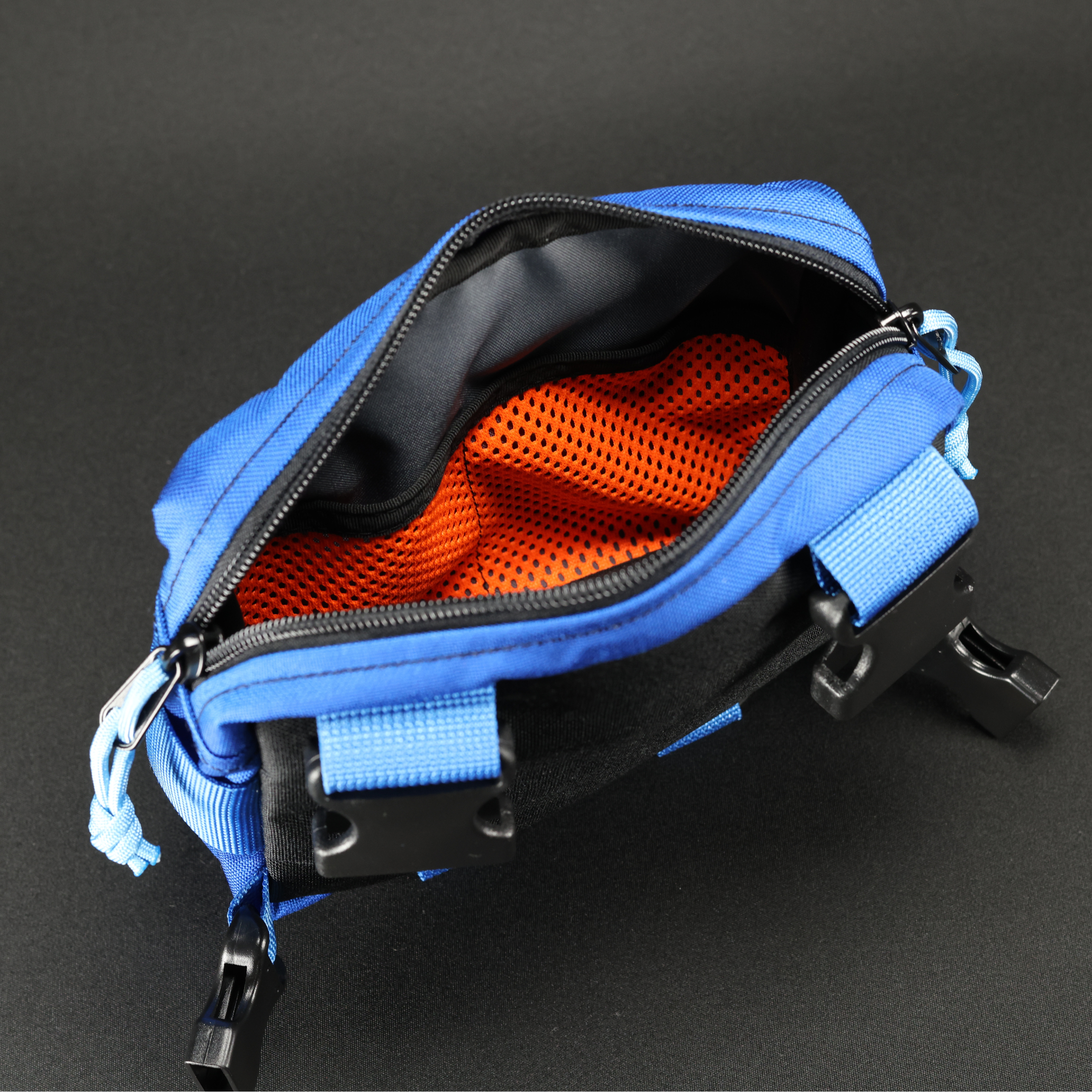 - Main Zip-up pouch, featured inside is a front HD mesh divider, rear sleeve and main pouch, with an internal strip of loop tape to attach additional organisational accessories