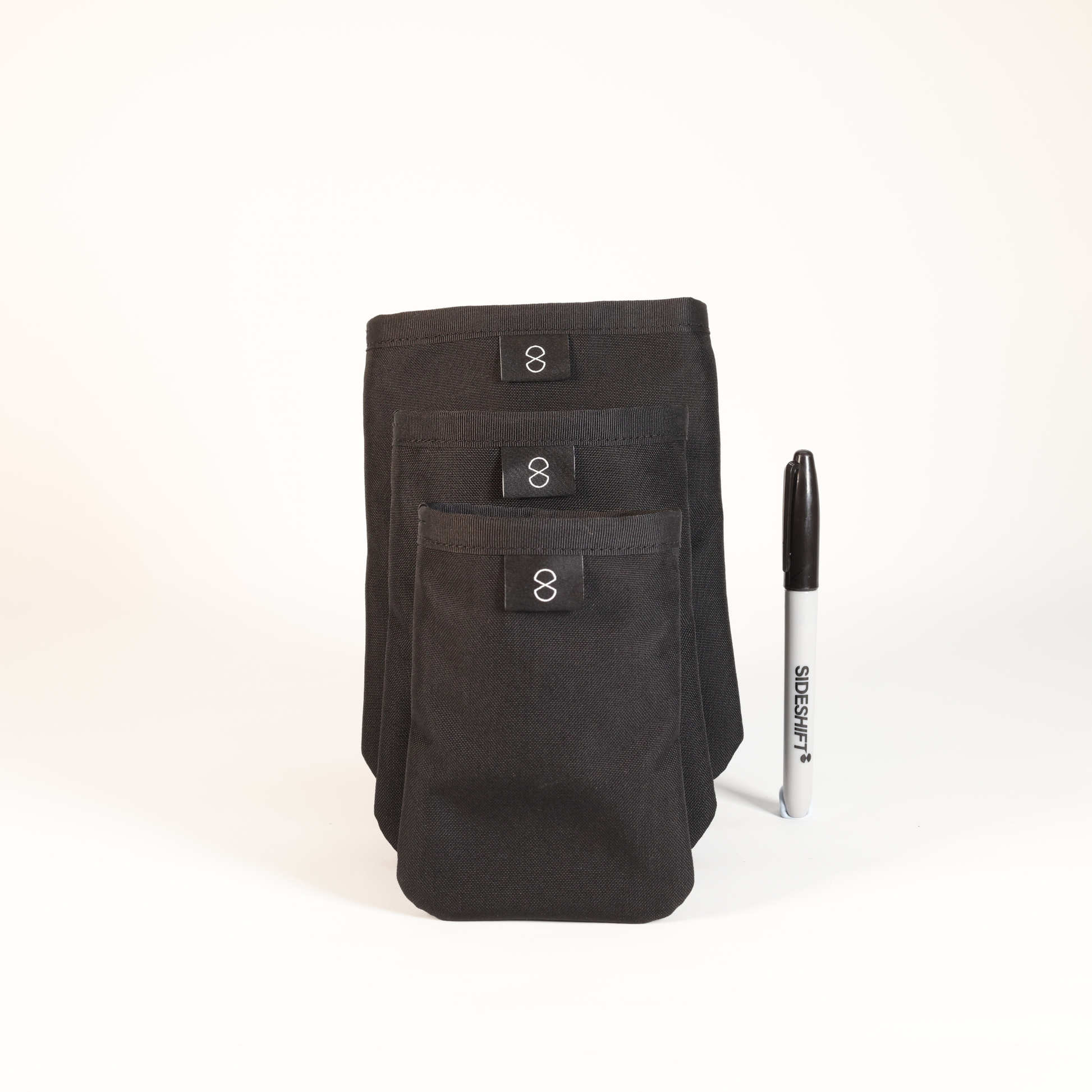 Features a small strip of hook & loop at the top of each pouch to act as an enclosure.