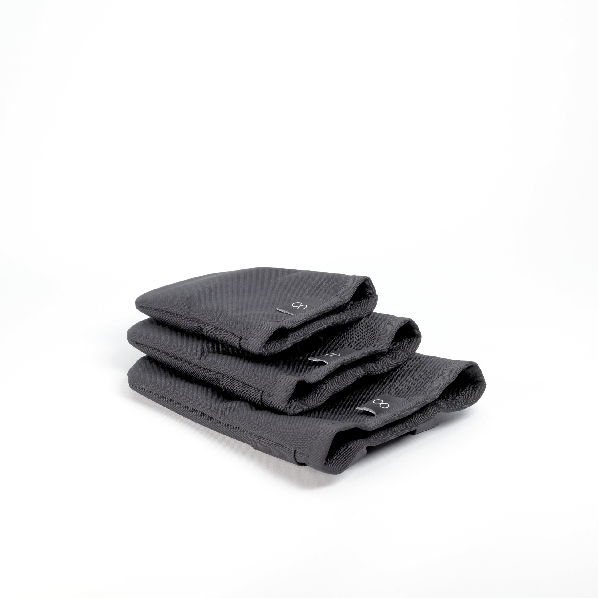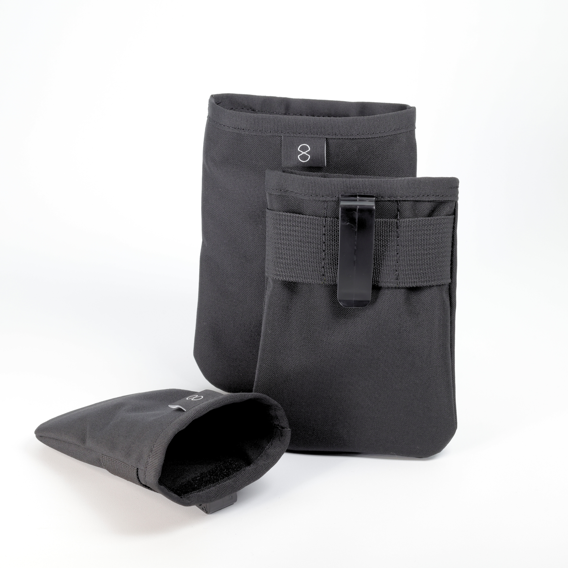 Features a small strip of hook & loop at the top of each pouch to act as an enclosure.